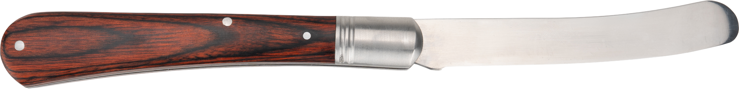 Składany nóż do masła, wykonany ze stali nierdzewnej, z drewnianą rękojeścią. Przydatny podczas podróży.