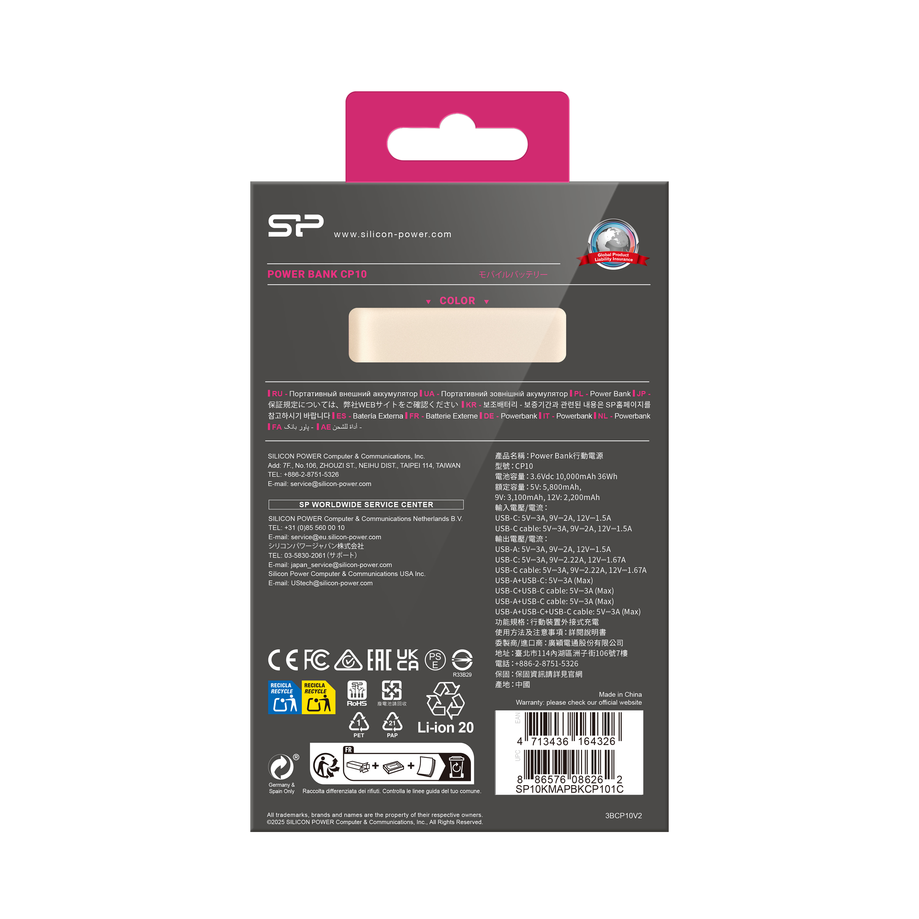 Power bank 10000 mAh CP10 Silicon Power